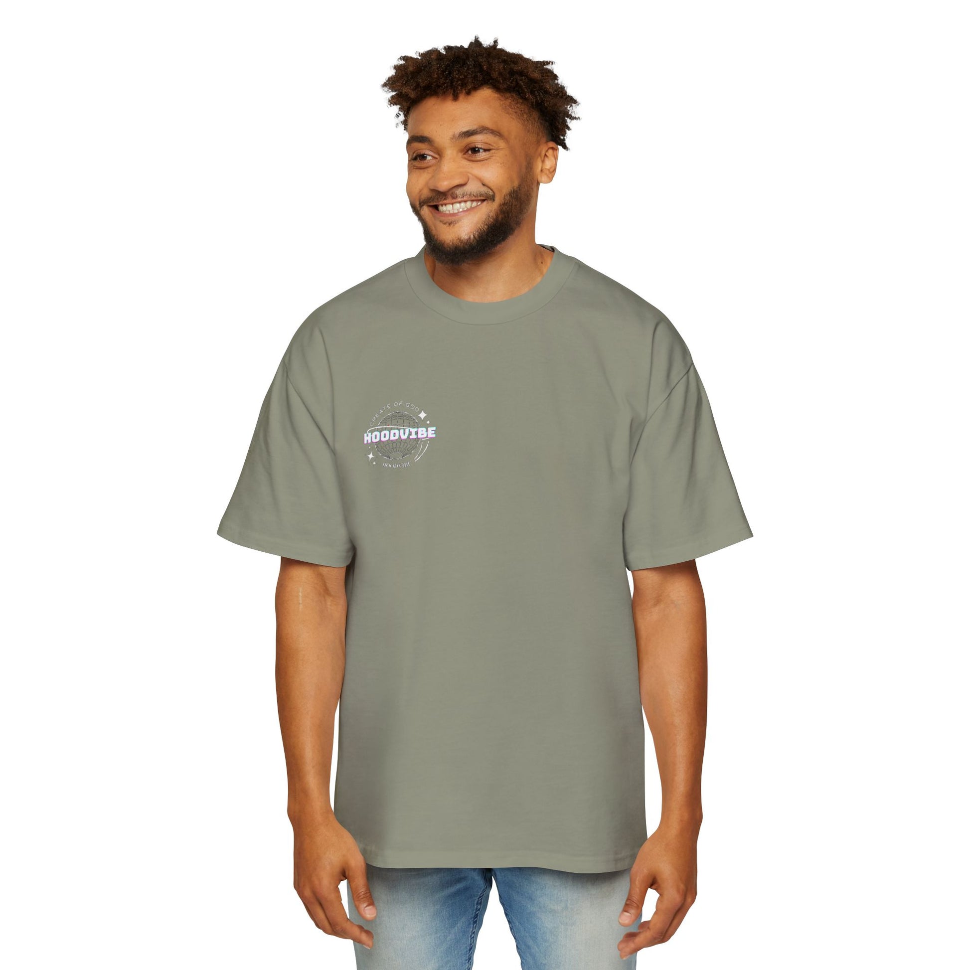 Men's Heavy Oversized Tee - Create Good Vibes Graphic, Streetwear Shirt, Relaxed Fit Top, Cool Casual Wear, Gift for Him